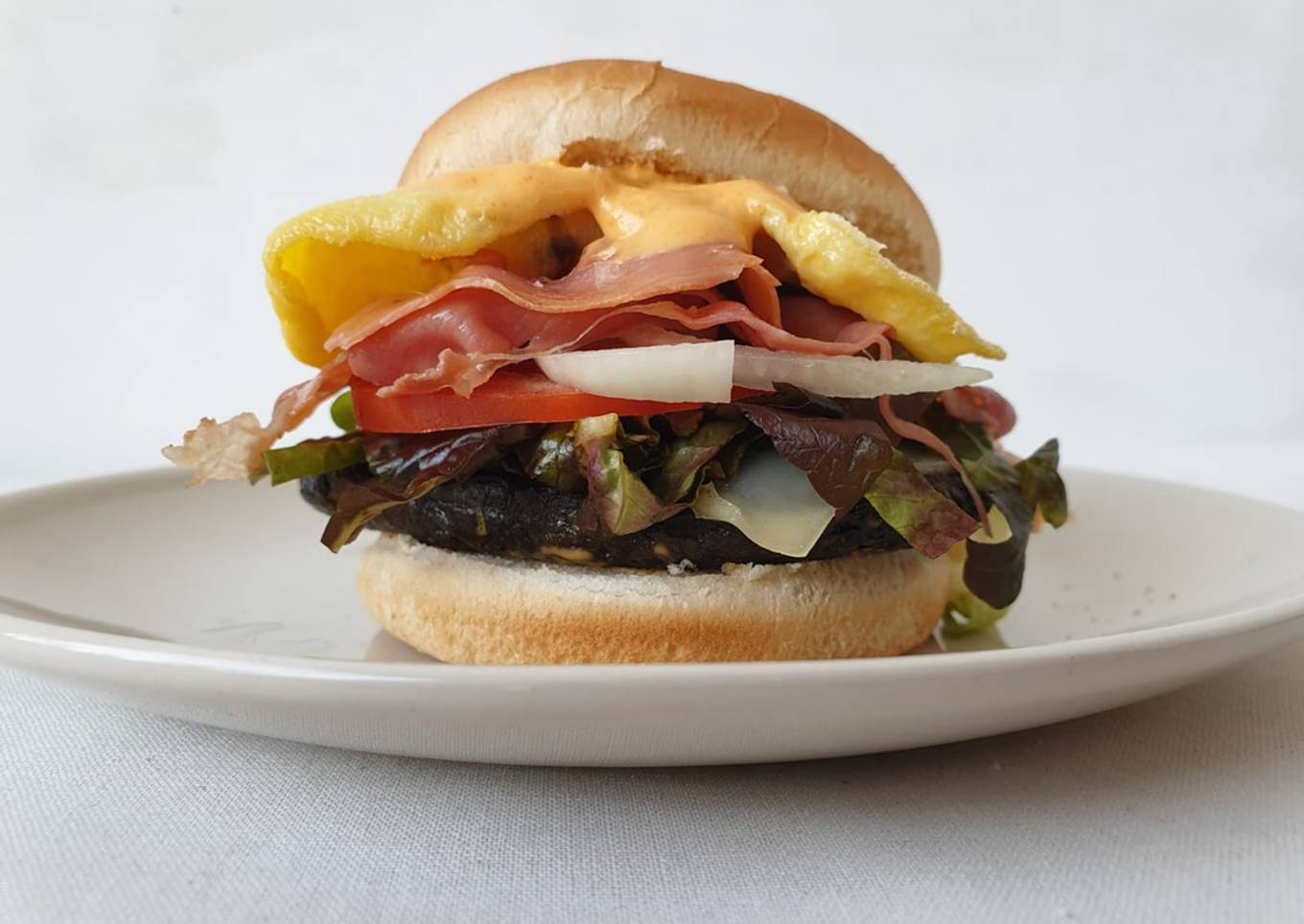 Hamburguesas de champiñones con queso y salsa “quasi” veganesa