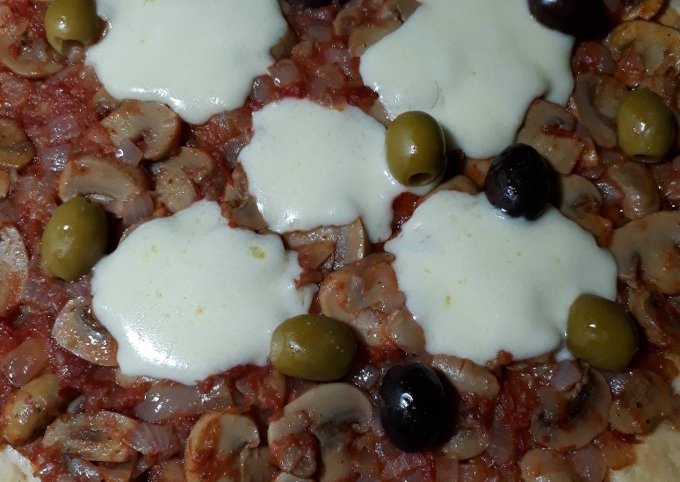 - Distribuir en toda la pizza colocar muzzarela y aceitunas