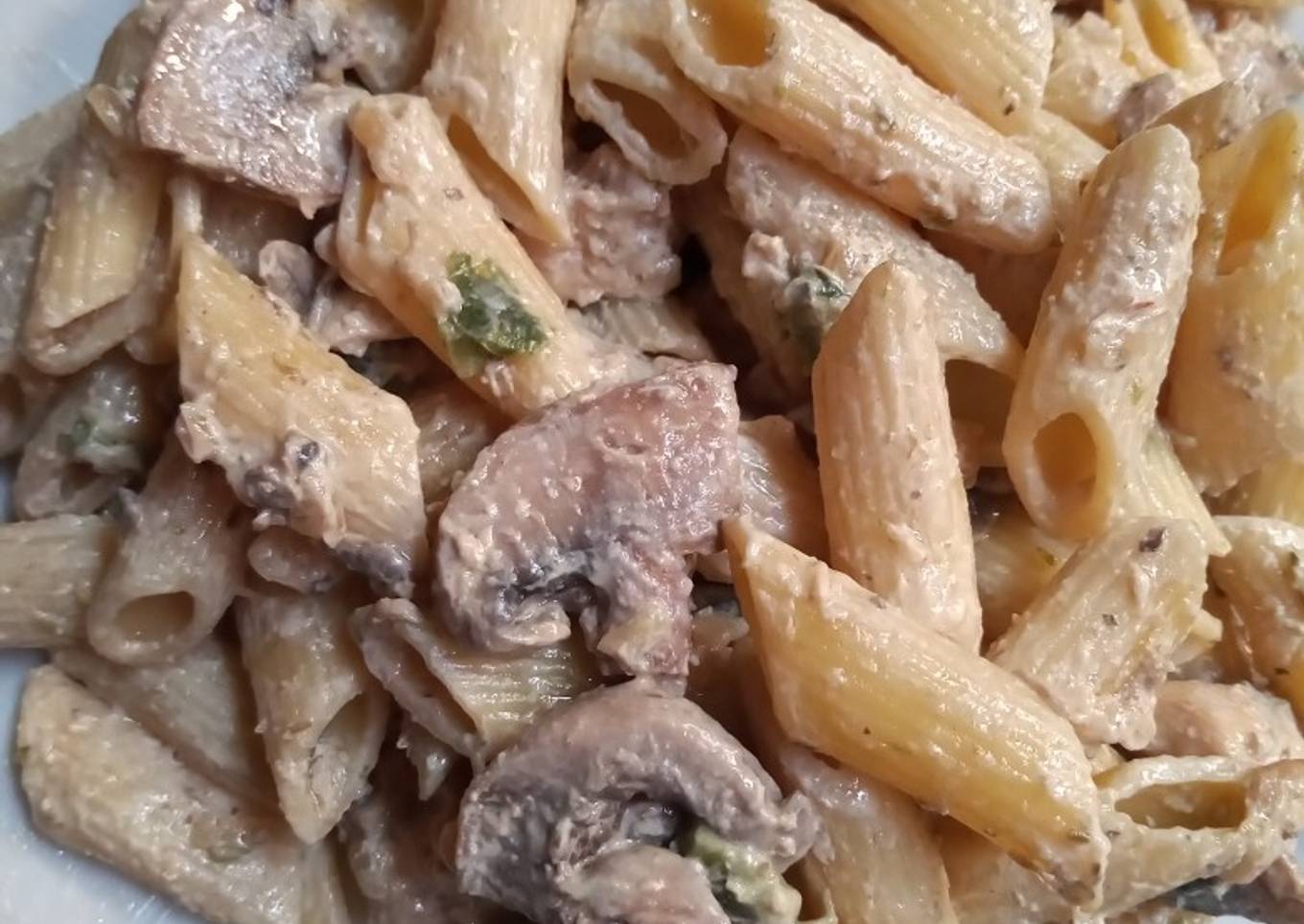 Pasta con pollo y champiñones a la crema